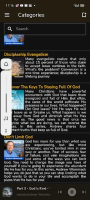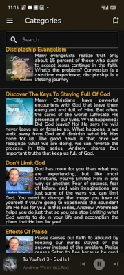 Some features of this app are: • Classified teachings based on category. • Dark and light theme. • Download audio from the internet. • Recent teachings and radio programs.