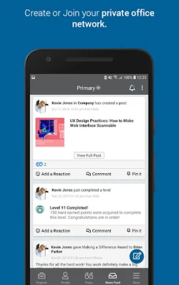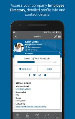 like company directory, search, polls, virtual accolades, office pokes, and birthday gifts, to promote company-wide interaction and collaboration.