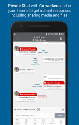 All features are seamlessly integrated allowing you to transition from reading your team’s microblog to asking private questions over
