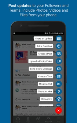 * Ability to take screenshots and post photos: Take a picture of that whiteboard discussion and post it to your feed.