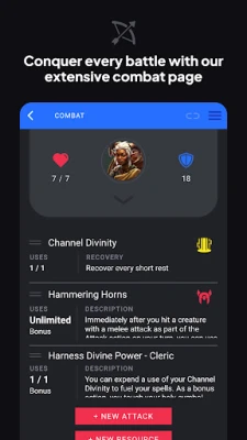 Take combat to the next level with our intuitive combat page, designed to streamline every encounter. Stay connected with your party by syncing character statuses over Wi-Fi, ensuring teamwork is always at your fingertips. Need to customize on the fly? Our quick-add page makes searching for items, features, and updates fast and easy.