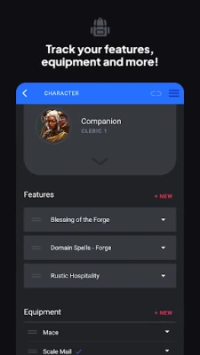 Our app is packed with features to elevate your character sheet experience, making it the ultimate companion for your D&D adventures. Seamlessly track every detail of your character, from skills and stats to inventory and more. Pair your sheet with a comprehensive spellbook that lets you learn, prepare, and manage spells effortlessly.